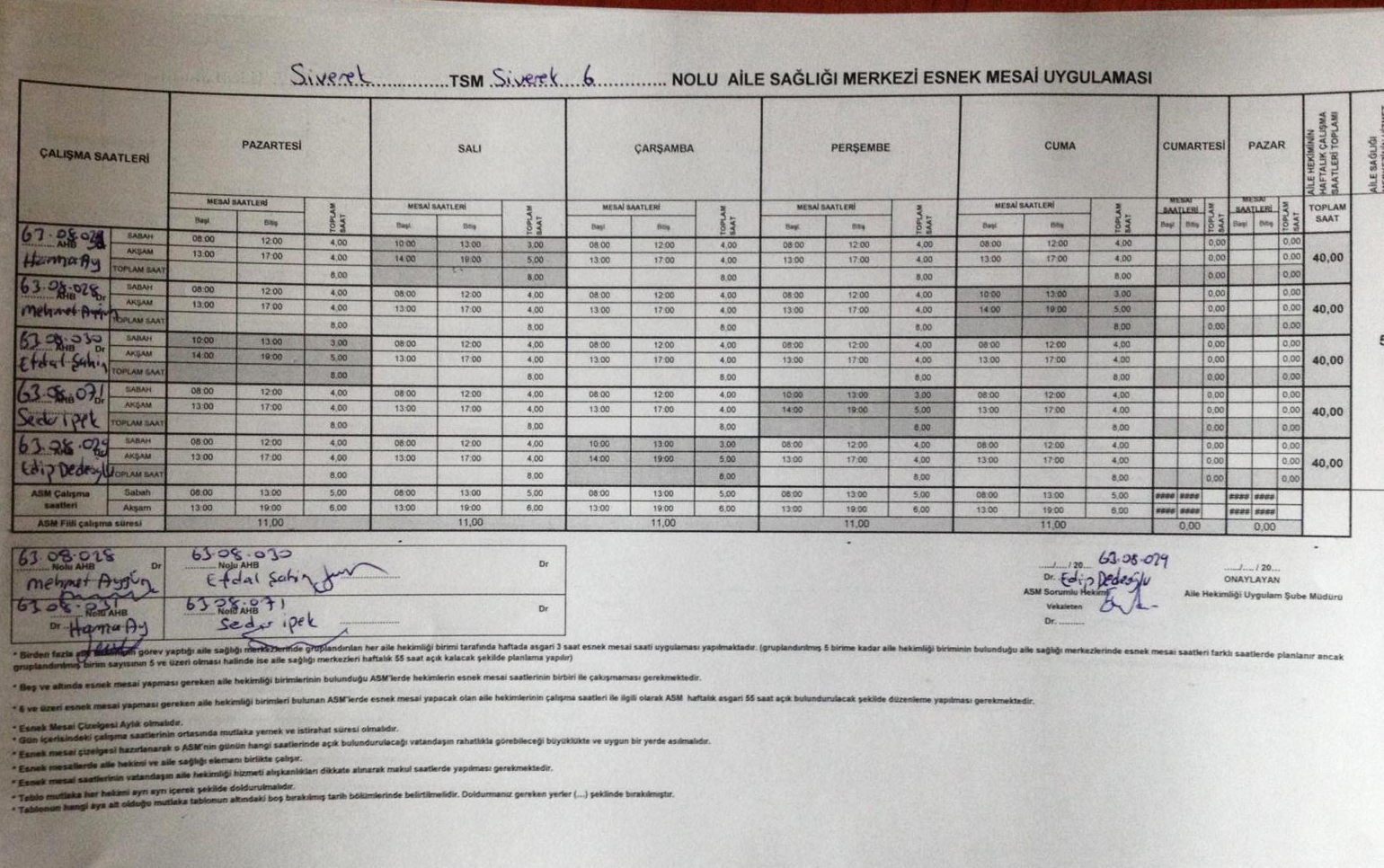 Siverek 6 Nolu Aile Sağlığı Merkezi Esnek Çalışma Saatleri Aşağıdaki Gibidir.